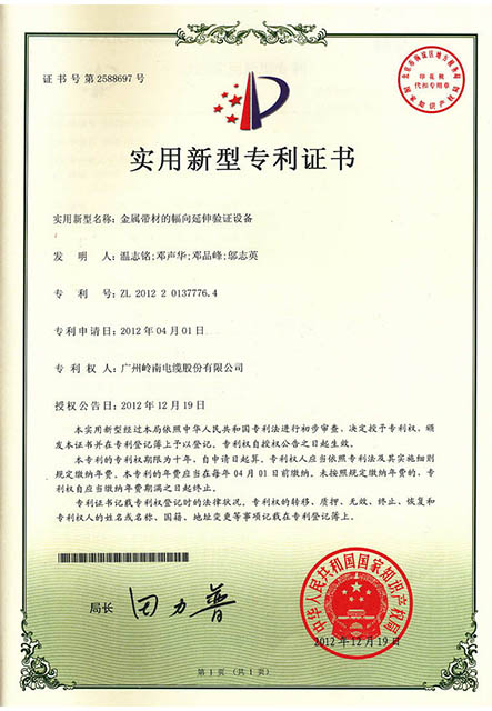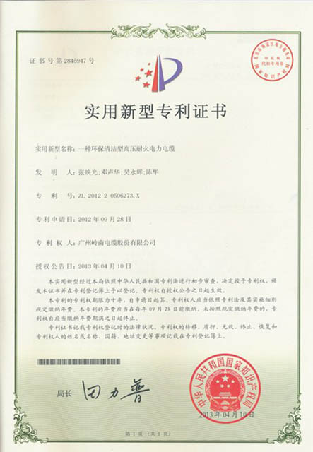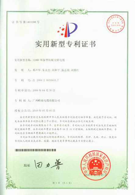 实用新型专利证书